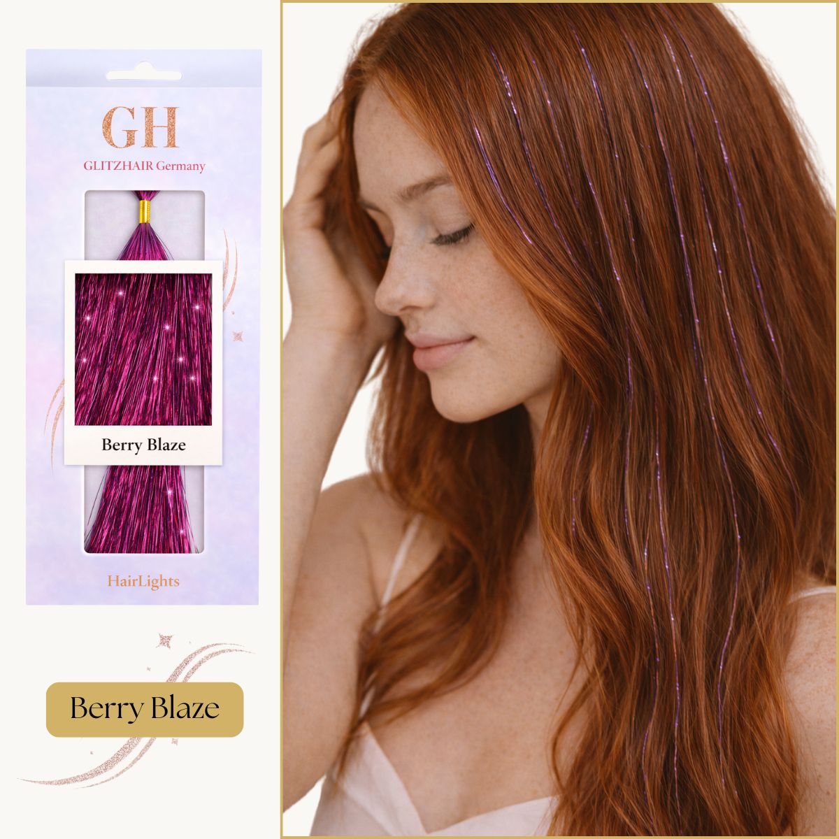Tipp: Verwende Berry Blaze als Statement-Farbe oder als kraftvollen Kontrast zu ruhigeren Tönen wie Stardust Silver, Champagne Charm oder Bronze Bliss. Auch in Kombination mit Raspberry Rhapsody entsteht ein intensiver, harmonischer Beeren-Mix, der besonders bei Events, Festivals oder abendlichen Looks gefragt ist.