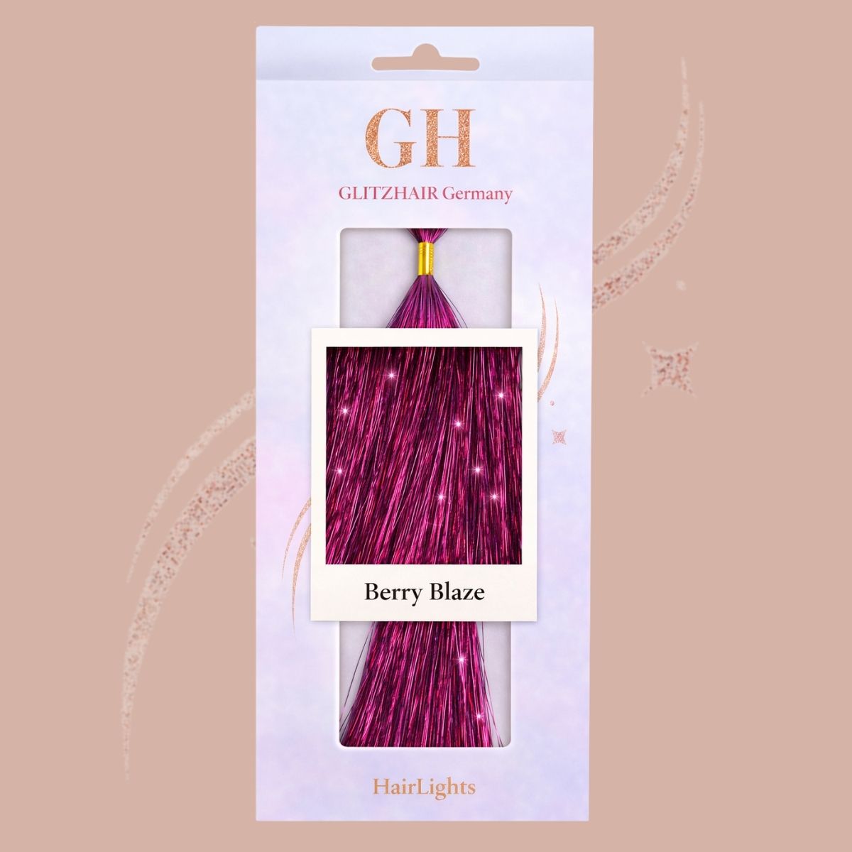 Berry Blaze Hair Tinsel in einem leuchtenden Beerenrot mit feurigem Unterton.